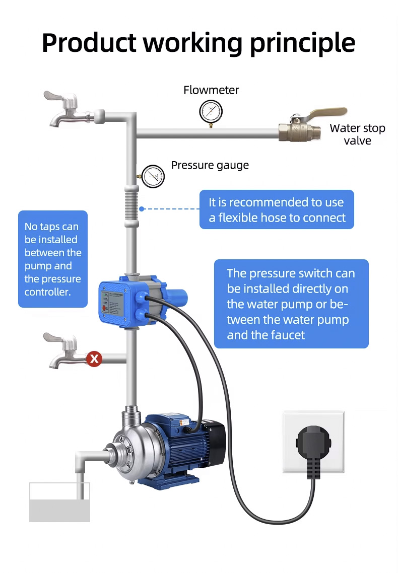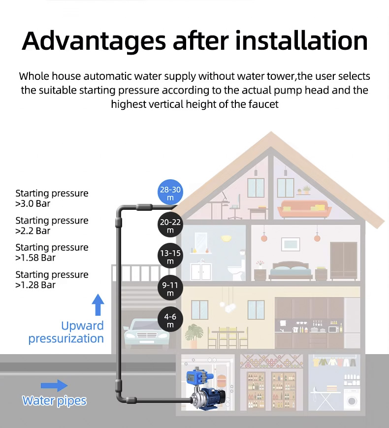 ऑटोमॅटिक पंप कंट्रोलर वॉटर पंप इलेक्ट्रॉनिक प्रेशर कंट्रोलर स्वयंचलित वॉटर पंपच्या क्लिष्ट स्थापना बदलू शकतो. यात स्थिर कामगिरी, कमी देखभाल आणि दीर्घ आयुष्याची वैशिष्ट्ये आहेत.