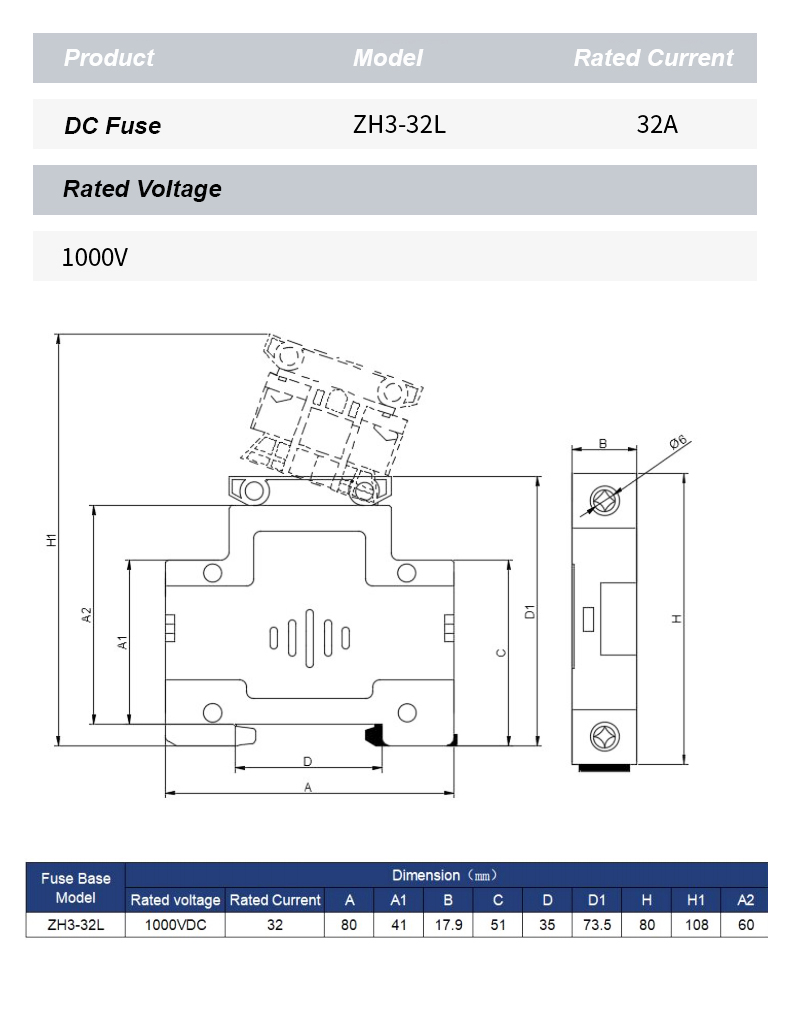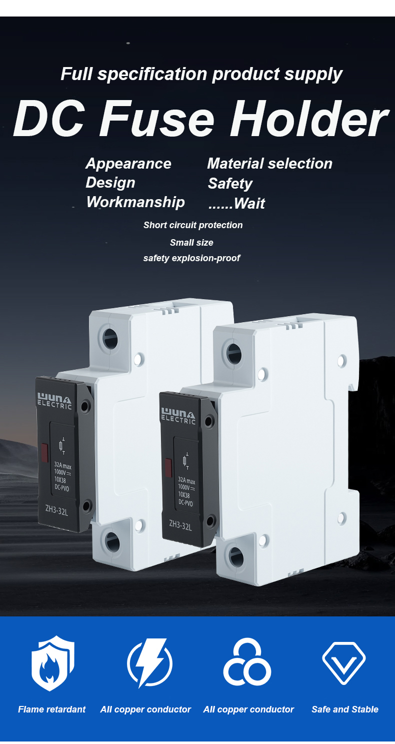 ZH32L DC 1000V फ्यूज होल्डर हा फोटोव्होल्टेइक आणि इतर DC अनुप्रयोगांमध्ये इलेक्ट्रिकल सर्किट्ससाठी विश्वसनीय संरक्षण सुनिश्चित करण्यासाठी डिझाइन केलेला उच्च-कार्यक्षमता घटक आहे. मजबूत बांधकाम आणि उत्कृष्ट इन्सुलेशन वैशिष्ट्यीकृत, ZH32L DC 1000V फ्यूज होल्डर 1000V DC पर्यंत रेट केलेल्या सुरक्षितपणे गृहनिर्माण फ्यूजसाठी योग्य आहे, प्रभावीपणे ओव्हरकरंट आणि शॉर्ट-सर्किट नुकसान टाळते.