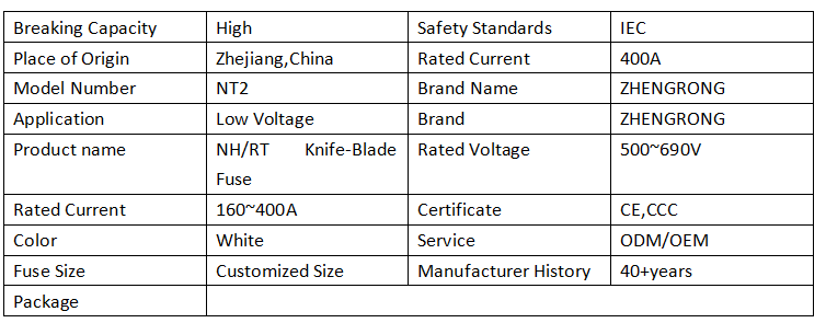 ZHENGRONG NT2 315A 500V फ्यूज स्क्वेअर सिरेमिक फ्यूज हे सर्किट संरक्षणासाठी वापरले जाणारे सुरक्षा साधन आहे.